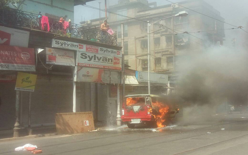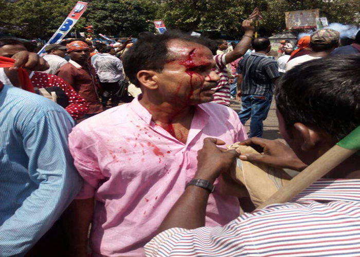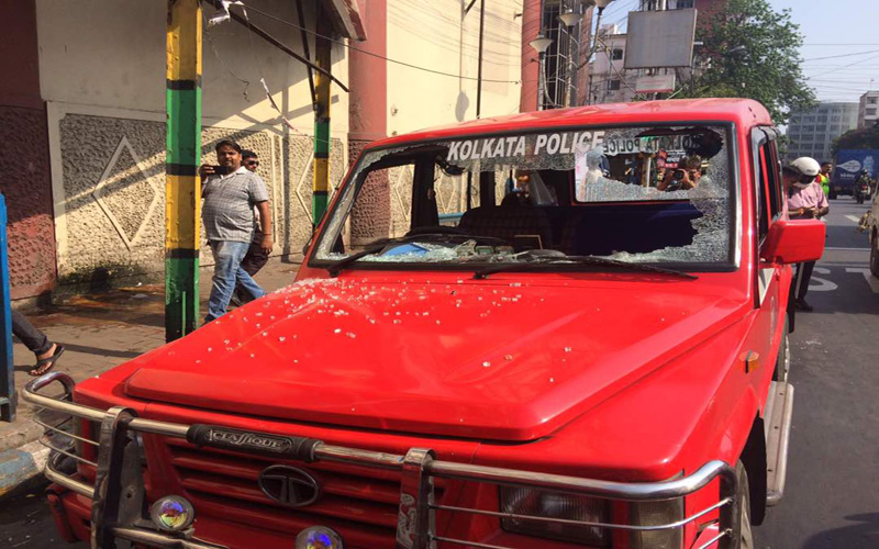 Kolkata: The rally organised by the Bengal unit of BJP, Chalo Lal Bazar (Lets go to Lal Bazar), took a violent turn, when the police stopped the procession led by BJP state president Dilip Ghosh near a barricade set up by the police. But the rallyists were in no mood to listen to the announcements made by the police, thereby, making them resort to using tear gas shells and water cannons to disperse the crowd. The participants attacked the police with water bottles and eggs. However, around this time a bomb was hurled at a police post. Despite no one being injured by the bomb, it made many wonder about the eighties, when such bomb attacks were a norm during rallies. The BJP supporters, also torched the officer-in-charge’s vehicle. The scuffle led to injury of over a hundred BJP volunteers and 21 policemen. Kolkata police also shared a clipping on its twitter account, how BJP workers were damaging police vehicle, a government property. Interestingly, Bengal BJP’s social media accounts have also shared a fake picture of an accident victim to highlight police atrocity. When one Deepak Roy, a friend of diseased revealed about it, on his Facebook, that Rupak Debnath had died from road accident, the party removed the post from its accounts.