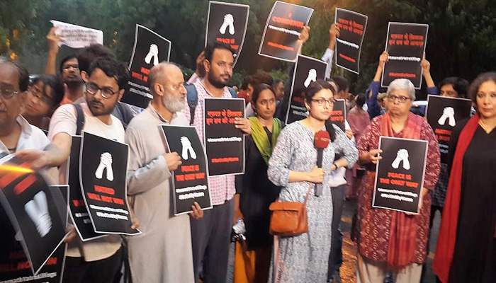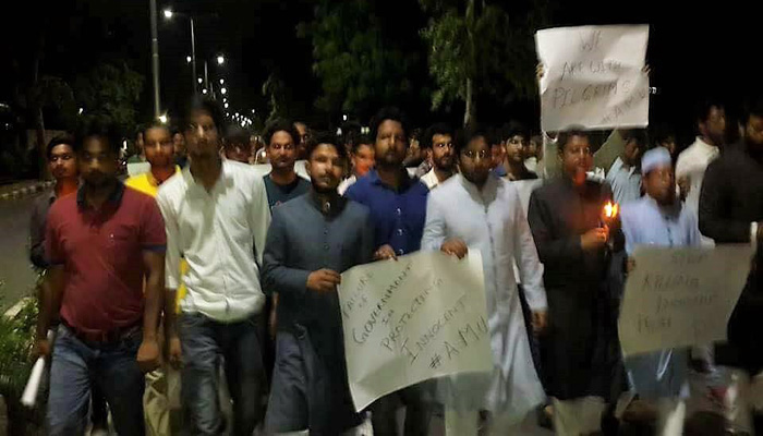 Kolkata: Common man, social and human rights activists came out in scores to condemn the attack on the Amarnath Pilgrims. They even held a candle light vigil to pay tribute to those killed during the attack. Coming forward was also those who had recently protested over mob lynching under the banner of Not In My Name campaign. Large number of people turned up right from Kashmir, to Jantar Mantar, New Delhi, Aligarh Muslim University, Aligarh, Jaipur, Bhopal, Pratapgarh and Giridih. The common Indian seemed to be grieving over the dastardly act of the terrorists. In Kashmir, the Kashmir Civil Society called to pay the tribute to the victims, while eminent activists like Shabnam Hashmi, Kavita Krishnan, and journalists like Saba Naqvi and Vinod Sharma were present along with many others in Delhi. AMU students marched in the city with candles in their show of solidarity with the victims. In Jaipur, Kavita Srivastava led a candle vigil upto Gandhi Circle. Bhopal witnessed maximum citizen presence. The members of minority wing of Pratapgarh Congress also paid tribute, while in Giridih, Rajesh Sinha of CPI-ML and Sandeep jaisawal of AISA, led candle vigil. Kolkata which had heavy rainfall on Tuesday, will have many such programme on July 12. All pictures have been arranged.