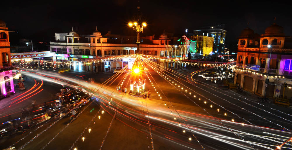 Jaipur: The old city of Jaipur, better known as Pink City, as everyone knows, is beautiful because of its colour and marvellous structure. During the festival of light, Diwali or Deepawali, spectacular lighting adds on to the charm of this city area. Keeping the recent three-day curfew into account, this festivity was very much need. Our photojournalist Chandra Mohan Aloria clicked a few pictures to capture the festive mood of the old city.