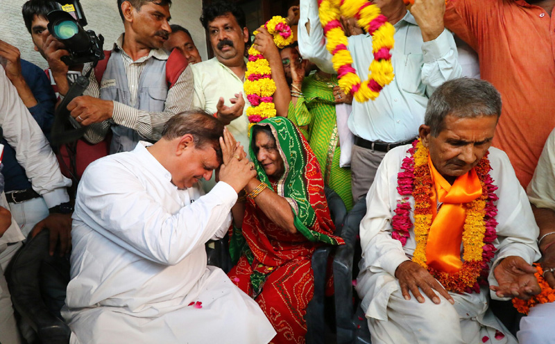 eNewsroom’s photo journalist, Chandra Mohan Aloria, captured some of those memorable moment when Makhni Devi met Gajanand Sharma, at the residence of Jaipur MP Ramcharan Bohra, who played an important role in helping the 70-year-old frail man getting released.