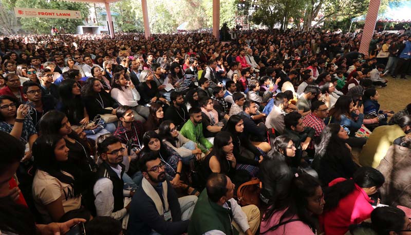Jaipur: Jaipur Literature Festival’s 11th edition, as expected is witnessing high voltage drama because of the present political and social situation of India. For the first time Rajasthan Chief Minister Vasundhara Raje did not turn up for the inauguration, and the Chairperson of Central Board of Film Certification (CBFC), Prasoon Joshi, had to pull out of the event. Joshi, a regular at JLF, was threatened by Karni Sena for giving a clearance to Padmaavat movie. However, from its first day, January 25 to its third, many national and international celebrities from different walk of life, right from Tabla maestro Zakir Hussain to actors like Nawazuddin Siddique, Nandita Das, filmmaker Vishal Bharadwaj, politicians Salman Khurshid and youth leaders like Gurmehar Kaur, to authors like Ashok Vajpai, Hansda Sowendra Shekhar, politician cum author Shashi Tharoor, Mridula Behari had sessions at JLF so far. And as expected a huge crowd turned up to listen to their favourite celebs and speakers. Photo credit: Chandra Mohan Aloria